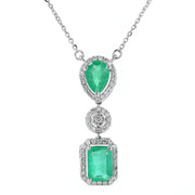 Natural Emerald Drop Halo Diamond Necklace: 14k Solid Gold Fancy Gemstone Stackable Jewellery, Certified Jewelry