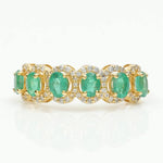 - Oval Emerald Diamond Eternity Band Ring, 14k Solid Gold, Natural Diamonds, Halo Gemstone Stack Ring, Wedding Band, Certified Jewelry