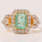 - Emerald Cut Green Diamond Ring, 14K Solid Gold, Natural Diamonds, Halo Cocktail Gemstone Ring, Statement Bridal Jewelry, Gift For Her
