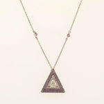 - Pink Sapphire Triangle Diamond Necklace, 14k Solid Gold, Natural Diamond, Geometric Gemstone Stackable Chain, Certified Jewelry