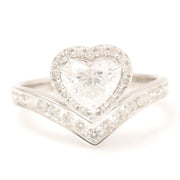 Heart Diamond Halo Ring: 14k Gold Chevron Band Engagement Jewelry
