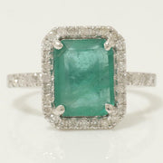 Emerald Halo Diamond Ring: 14k Gold Gemstone Engagement Jewelry