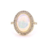 Natural Oval Opal Diamond Halo Ring, 14k Solid Gold, Natural Diamonds, Gemstone Jewellery, Cocktail Statement Ring, Certified Jewellery