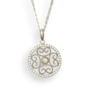 Floral Filigree Diamond Pendant Necklace, 14k Solid Gold, Natural Diamonds, Openwork Vintage Pendant, Minimalist Stacking Chain Pendant