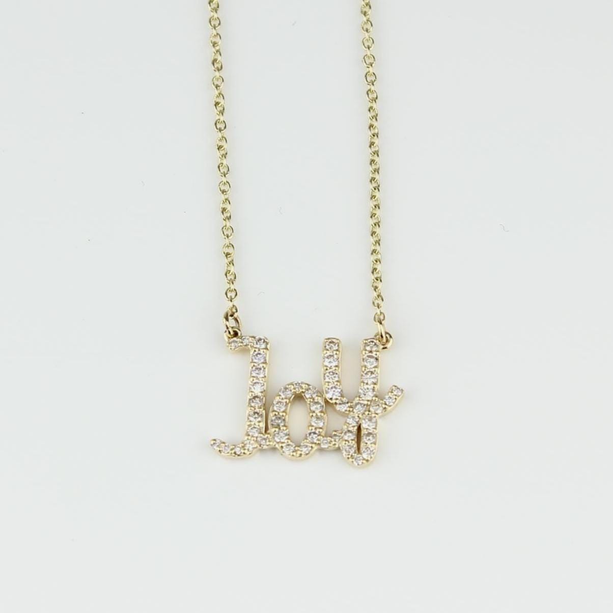 Joy Diamond Pendant Necklace, 14kt Solid Gold, Script Word Necklace, Handcrafted Inspirational Jewelry, Ready To Ship, Women's Day Gift