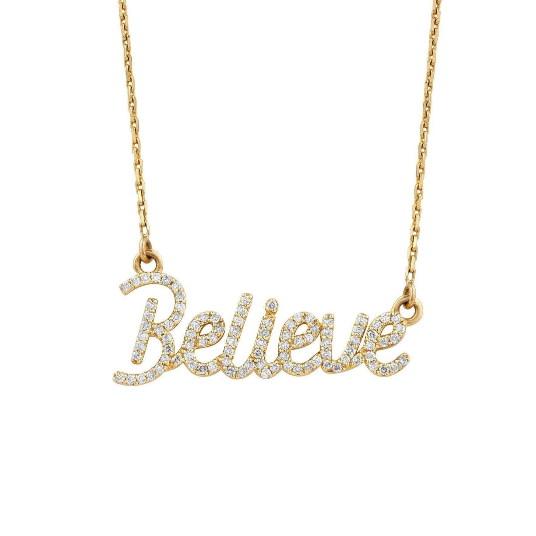 Believe Diamond Necklace, 14k Solid Gold, Natural Diamonds, Handcrafted Word Jewelry, Script Letter Necklace, Minimalistic Everyday Necklace