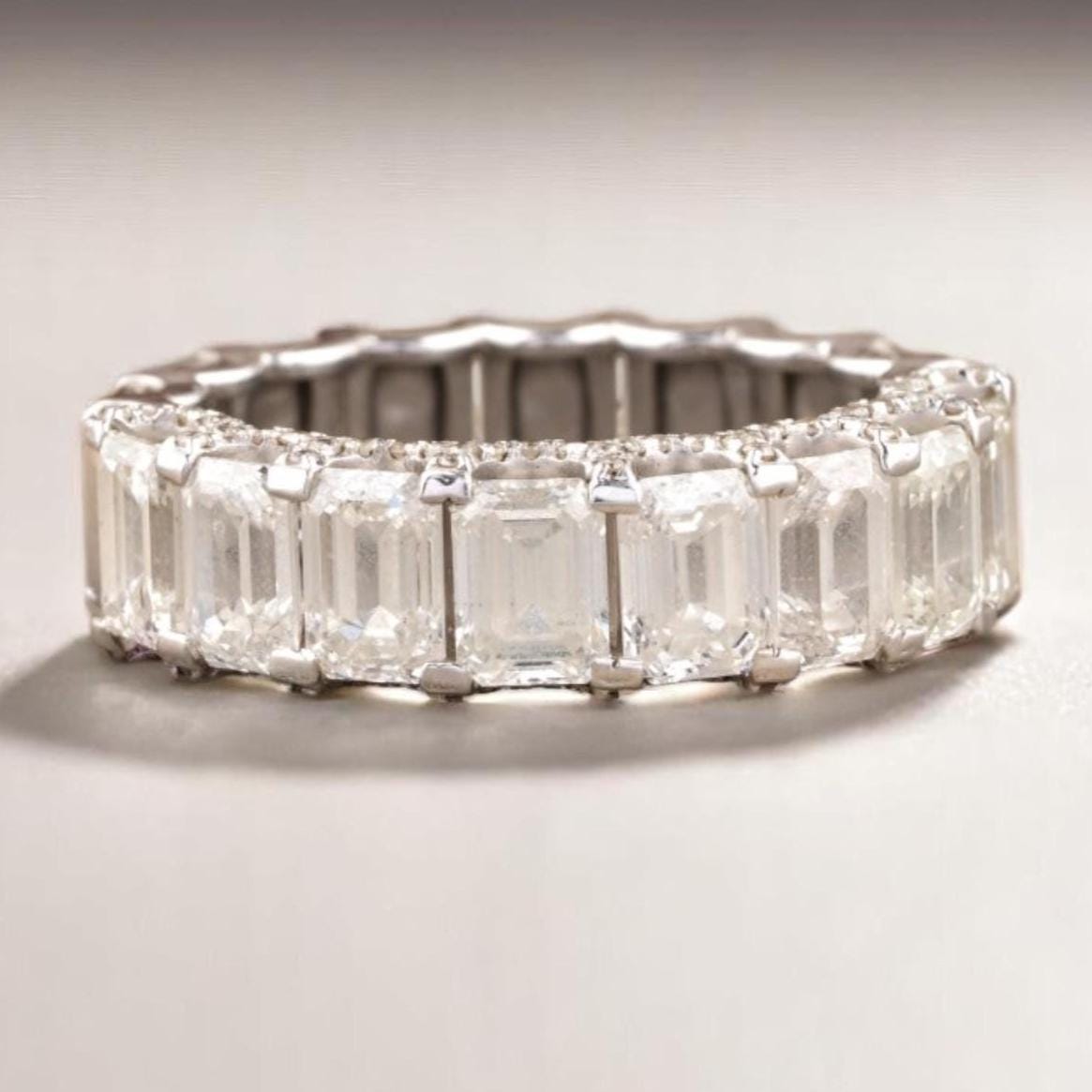 Emerald Cut Diamond Eternity Band, 14k Solid Gold, Natural Diamonds, Half Eternity Promise Ring, Wedding Band, Stackable Ring, Gift For Her