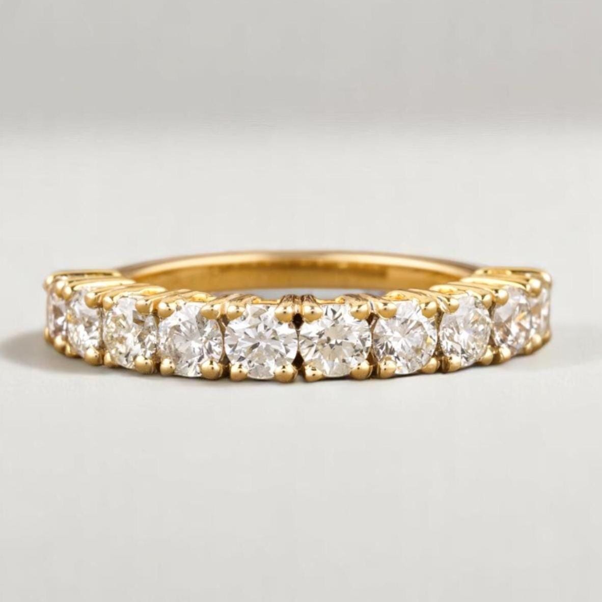 Eternity Wedding Band, 14k Solid Gold, Natural Diamonds, Engagement Stack, Bridal Stackable Ring, Statement Prong Ring, Gift For Her
