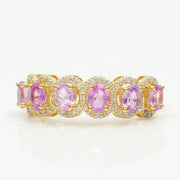 Pink Sapphire Diamond Eternity Ring, 14k Solid Gold, Natural Diamonds, Oval Halo Gemstone Band, Stackable Wedding Band, Certified Jewelry