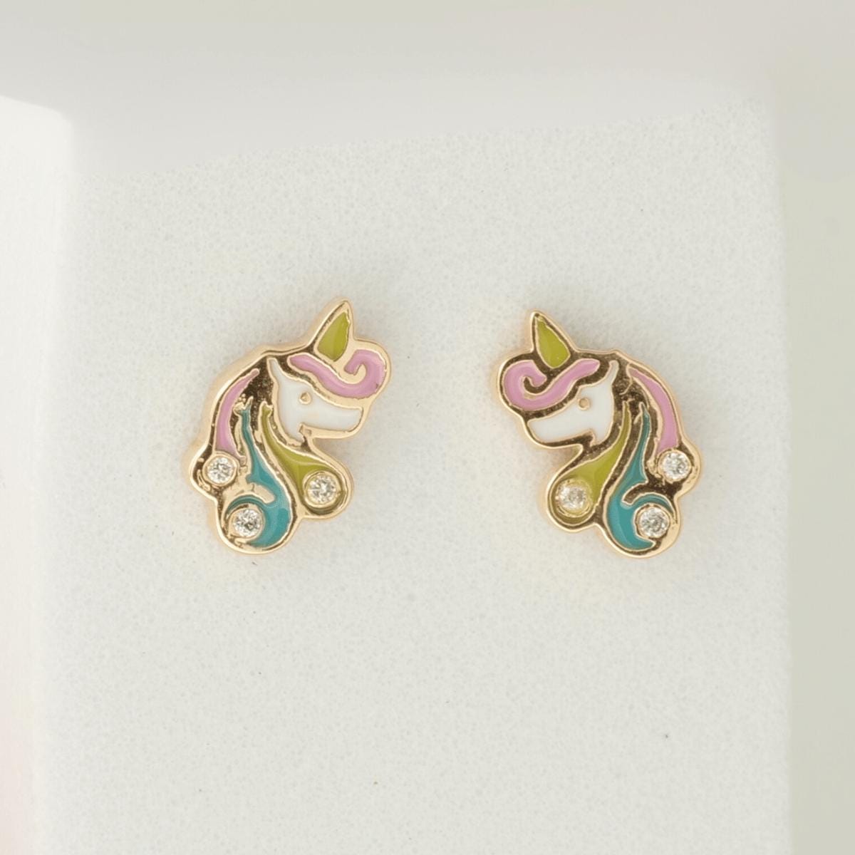 Unicorn Diamond Kids Stud Earrings, Colorful Enamel Studs, 14k Solid Gold, Natural Diamond, Everyday jewelry, Gift for toddler, girl and kid