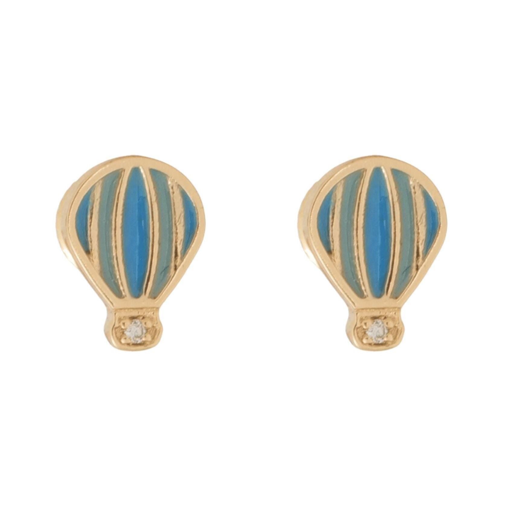 Kids Hot Air Balloon Diamond Earrings, 14k Solid Gold, Colorful Enamel Studs, Natural Diamonds, Gift for toddlers/girls/kids, Ready To Ship