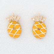 Kids Pineapple Diamond Earrings, 14k Solid Gold, Natural Diamonds, Enamel Fruit Stud, Gift for toddler/girls, Ready To Ship, HRD Certified