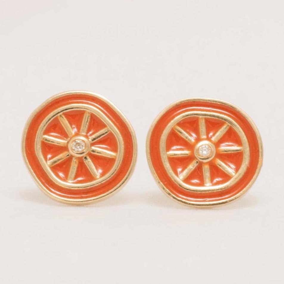 Kids Orange Slice Diamond Earrings, 14k Solid Gold, Orange Enamel Studs, Natural Diamonds, Gift for toddlers/girls/kids, Ready To Ship