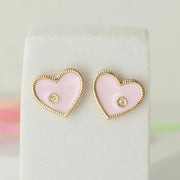 Heart Diamond Kids Stud Earrings, Pink Enamel Studs, 14k Solid Gold, Natural Diamonds, Everyday jewelry, Gift for toddlers, girls and kids