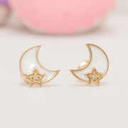 Moon and Star Diamond Kids Earrings, 14k Solid Gold, Natural Diamond, Minimalist Celestial Enamel Jewelry, Gift for toddlers, girls, and kid
