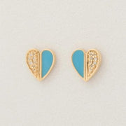 Heart Diamond Kids Earrings, 14k Solid Gold Enamel Studs, Natural Diamond, Minimalistic Everyday jewelry, Gift for toddlers, girls, and kid