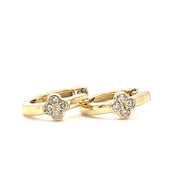 Diamond Clover Huggie Kids Earrings, 14k Solid Gold, Natural Diamonds, Kids jewelry, Everyday Hoops, Gift for toddlers, girls and kids