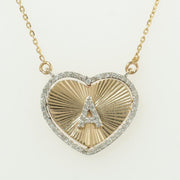 Heart Initial Diamond Charm, 14k Solid Gold, Natural Diamond, Everyday Staking Personalised Jewelry, Textured Letter Necklace, Ready To Ship