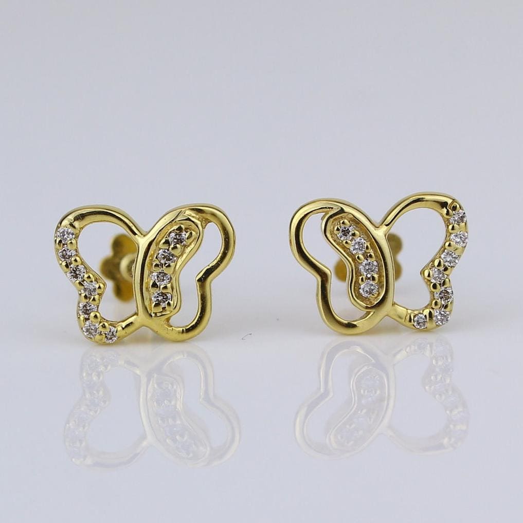 Kids Butterfly Diamond Stud Earrings, 14k Solid Gold, Natural Diamonds, Animal Jewelry, Gift for toddlers/girls/kids, Ready To Ship