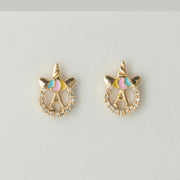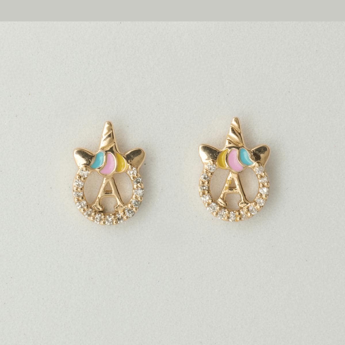 Unicorn Initial Diamond Kids Stud Earrings, 14k Solid Gold, Natural Diamond, Minimalistic Everyday jewelry, Gift for toddlers, girls and kid