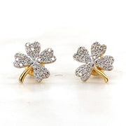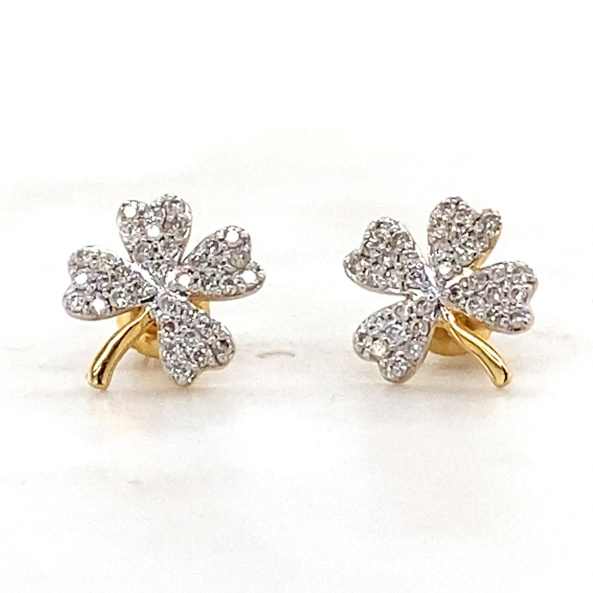 Kids Leaf Clover Diamond Stud Earrings, 14k Solid Gold, Natural Diamonds, Two Toned Studs, Gift for girls, Ready To Ship, HRD Certified