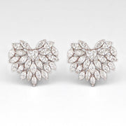 Heart Cluster Stud Earrings, 14k Solid Gold, Natural Diamonds, Angel Marquise Wings Earrings, Bridal Statement Jewelry, Cocktail Studs