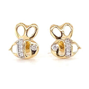 Kids Bee Diamond Stud Earrings, 14k Solid Gold, Natural Diamonds, Kids Jewelry, Gift for toddlers/girls/kids, Ready To Ship