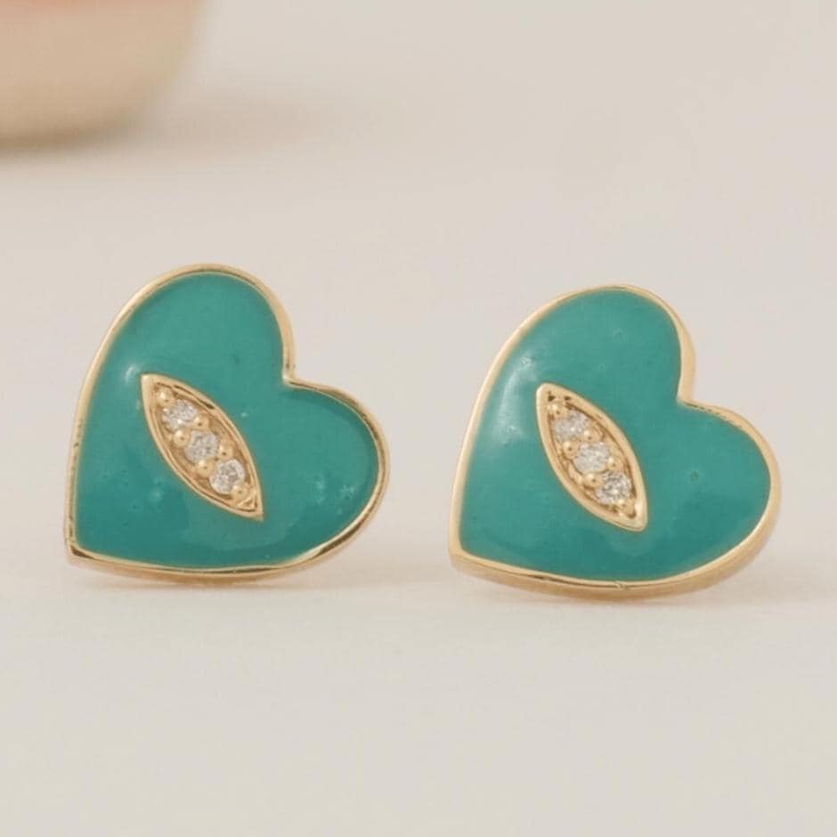 Kids Heart Earrings, 14k Solid Gold, Natural Diamonds, Enamel Studs, Kids Everyday Jewelry, Gift for toddlers/girls, Ready To Ship