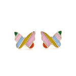 Kids Butterfly Diamond Stud Earrings, 14k Solid Gold With Enameling, Natural Diamonds, Gift for toddlers/girls, Ready To Ship, HRD Certified