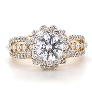 Halo Solitaire Ring, Engagement Diamond Ring, 14k Solid Gold, Natural Diamonds, Triple Shank Band, Dual Tone, Gift For Her