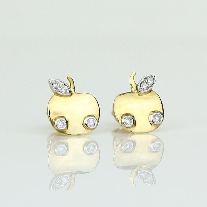 Kids Apple Diamond Stud Earrings, 14k Solid Gold, Natural Diamonds, Fruit Jewelry, Gift for toddlers/girls