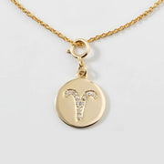 Aries Horoscope Birth Sign Charm, 14k Solid Gold, Natural Diamonds, Zodiac Constellation Everyday Jewelry, Astrology Gift