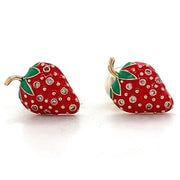 Kids Strawberry Diamond Stud Earrings, 14k Solid Gold, Natural Diamonds, Enamel Fruit Jewelry, Gift for girls, Ready To Ship, HRD Certified