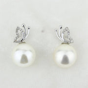 Butterfly Pearl Stud Earrings, Natural Diamonds, Gemstone Earrings, 14k Solid Gold, Gift For Her