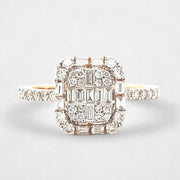 Round & Baguette Diamond Ring in 14k Solid Gold, Illusion Diamond Gold Ring, Natural Diamonds, Ready To Ship, Women's Day Gift