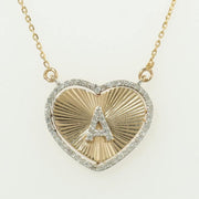 Heart Initial Diamond Charm, 14k Solid Gold, Natural Diamond, Everyday Staking Personalised Jewelry, Textured Letter Necklace, Ready To Ship
