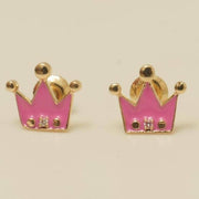 Diamond Crown Kids Earrings, Pink Enamel Studs, 14k Solid Gold, Natural Diamonds, Everyday jewelry, Gift for toddlers/girls, Ready To Ship