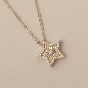 Star Diamond Pendant Necklace, 14k Solid Gold, Cluster Baguette Natural Diamond, Stacking Chain Pendant, Celestial Jewelry