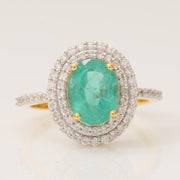 Oval Emerald Double Halo Diamond Ring, 14k Solid Gold, Natural Diamonds, Gemstone Statement Cocktail Jewelry, Engagement Wedding Ring,