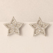 Star Diamond Stud Earrings, 14k Solid Gold, Natural Diamonds, Baguette Illusion Cluster Studs, Geometric Celestial Jewelry, Hip Hop Earrings