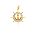 Anchor and Wheel Pendant Charm, 14k Solid Gold, Natural Diamonds, , Everyday Necklace Gift For Her