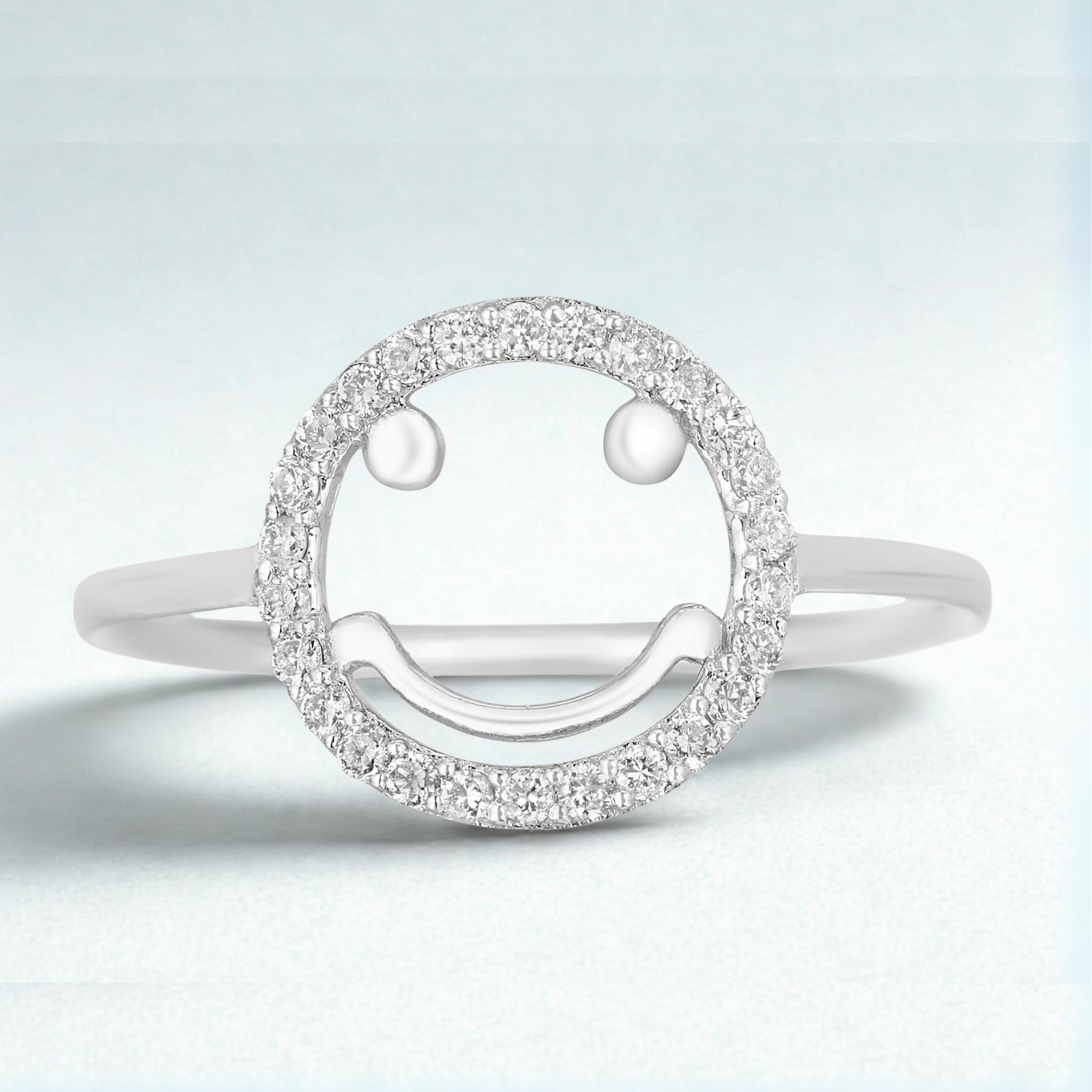 Smiley Diamond Ring, 14k Solid Gold, Natural Diamonds, Emoji Friendship Ring, Everyday Stackable Jewelry, Ready To Ship
