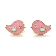 Kids Pink Bird Diamond Stud Earrings, 14k Solid Gold With Enameling, Natural Diamonds, Gift for toddlers/girls/kids, Ready To Ship