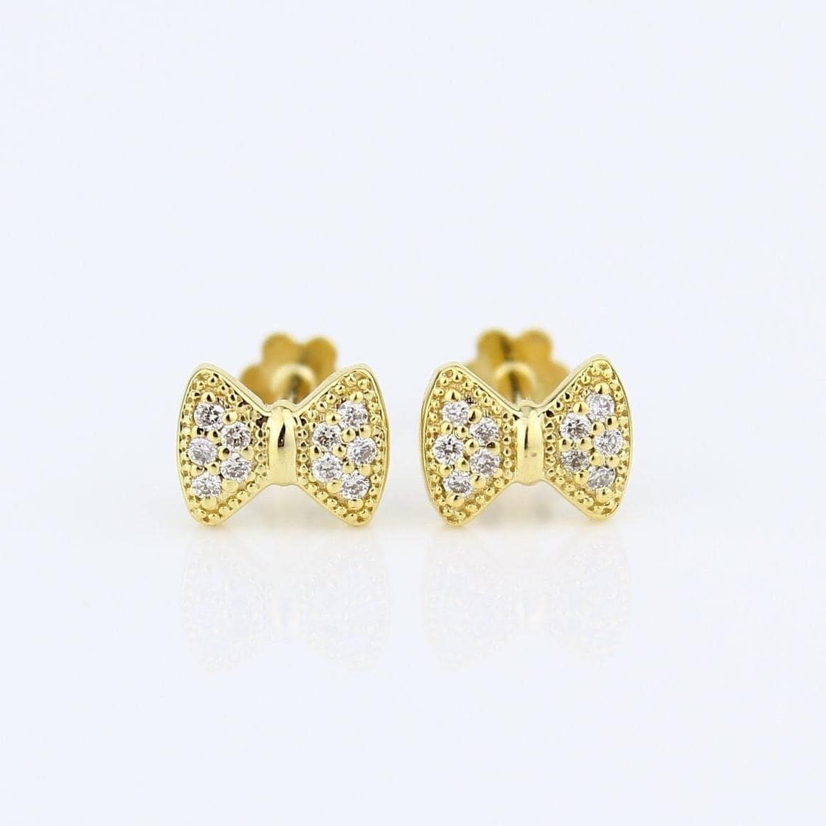 Kids Bow Diamond Stud Earrings, 14k Solid Gold, Natural Diamonds, Kids Ribbon jewelry, Gift for toddlers/girls/kids, Ready To Ship