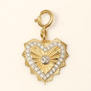 Heartburst Medallion Diamond Charm, 14k Solid Gold, Natural Diamonds, Dual Tone Layering Necklace, Everyday Pendant, Ready To Ship