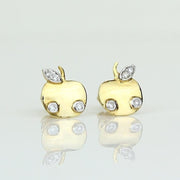 Kids Apple Diamond Stud Earrings, 14k Solid Gold, Natural Diamonds, Fruit Jewelry, Gift for toddlers/girls