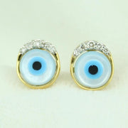 Kids' Evil Eye Diamond Stud Earrings, 14k Solid Gold, Natural Diamonds, Kids Protection Jewelry, Gift for toddlers/girls/kids