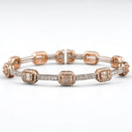 Emerald Cut Halo Natural Diamond Bangle Bracelet: 14k Solid Gold Two Toned Illusion Bridal Jewellery, Certified Jewelry