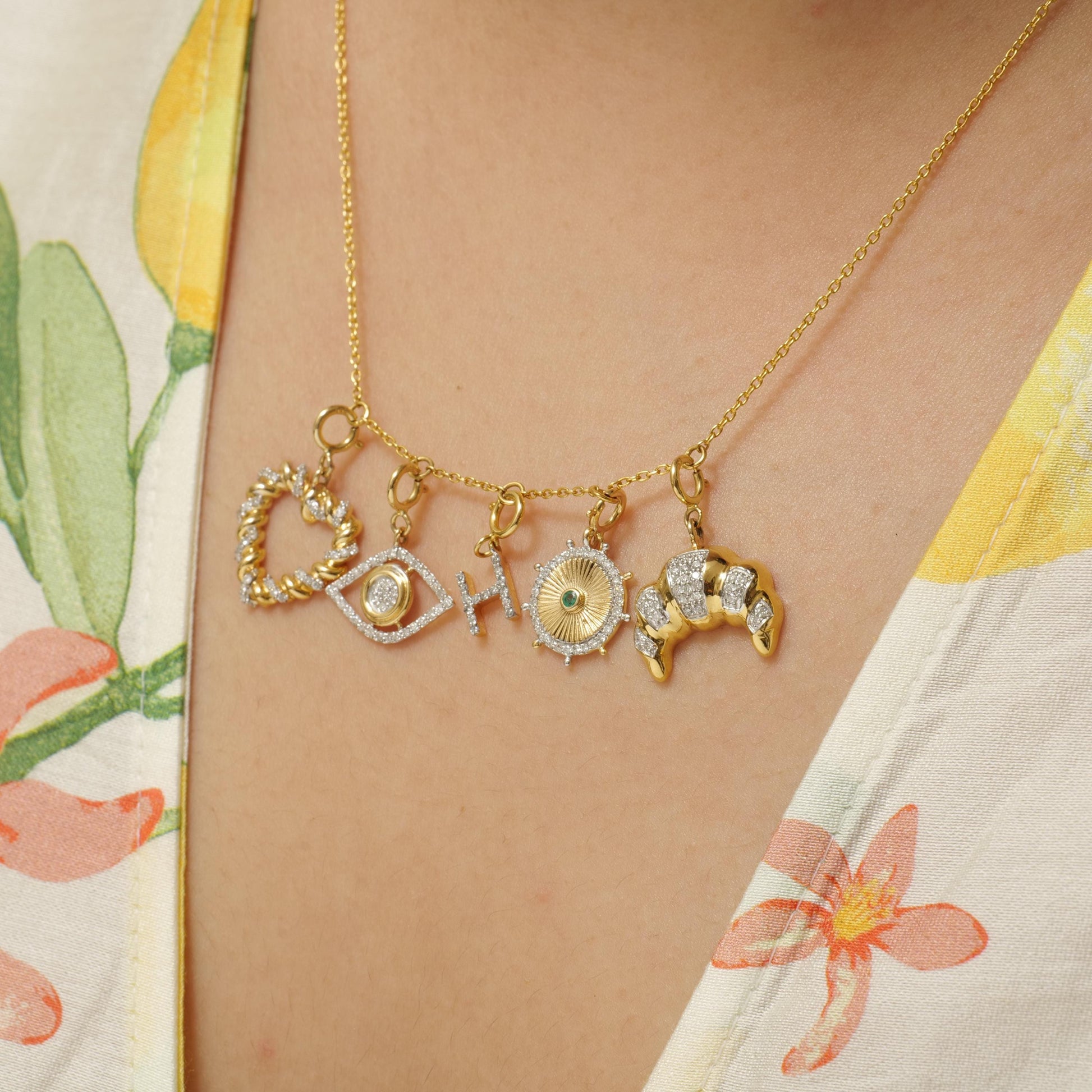 Croissant Natural Diamond Charm: 14k Solid Gold Everyday Layering Jewelry, Two Tone French Food Jewelry, Minimalistic Pendant, Ready To Ship