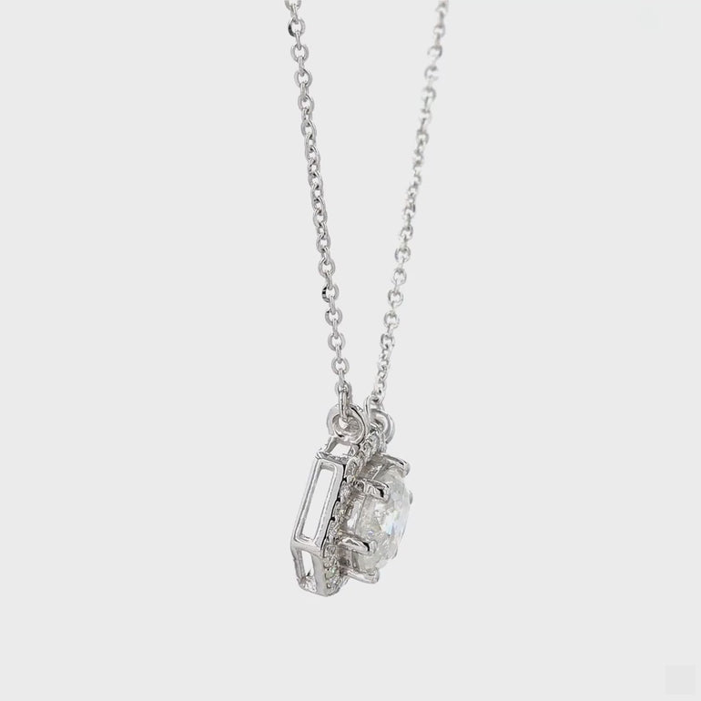 Load and play video in Gallery viewer, Hexagon Halo Solitare Pendant Necklace